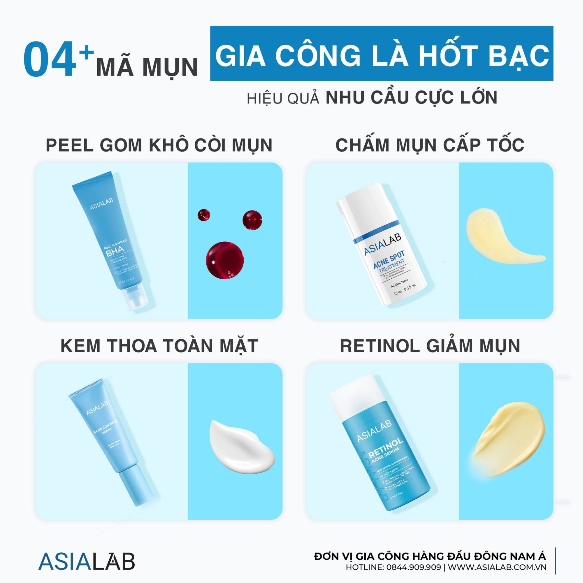 ASIALAB Gia công mỹ phẩm mụn thâm công thức Viện nghiên cứu có nhà máy sản xuất