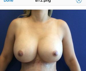 Từ các bức ảnh của bạn, có vẻ như túi độn ngực của bạn đã tụt xuống dưới nếp gấp chân ngực tự nhiên và ngay dưới vết mổ nâng ngực. Dẫn đến hiện tượng quầng vú bị trông có vẻ tương đối cao. Điều này xảy ra khi mô không thể nâng đỡ trọng lượng của túi độn ngực. Để khắc phục, bạn sẽ cần thắt chặt khoang đặt túi độn, cũng như thêm một số loại hỗ trợ bên trong, ví dụ như lưới tự tiêu hoặc lưới sinh học hoặc ít nhất là túi độn ngực vỏ nhám. Bạn cũng có thể cân nhắc giảm kích thước túi độn để hạn chế nguy cơ tái phát. Đây là một biến chứng đáng tiếc của nâng ngực nhưng nó chắc chắn có thể khắc phục được.