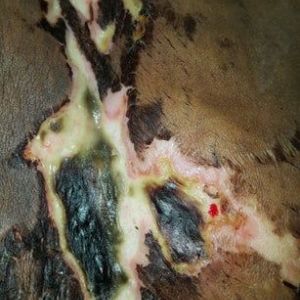 Có vẻ như bạn đã bị hoại tử ở một phần da sau hút mỡ. Bạn nên liên lạc với bác sĩ phẫu thuật thẩm mỹ của mình ngay lập tức và lên lịch khám trực tiếp. Nếu bác sĩ không khám được thì tới phòng cấp cứu và bất đầu quá trình điều trị càng sớm càng tốt. Rất có thể họ sẽ bắt đầu từ băng kem Silvadene (bạc sulfadiazin), hoặc có thể cắt lọc lớp da bị hoại tử.