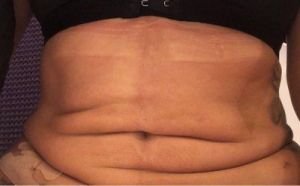 Ảnh chụp trước khi hút mỡ cho thấy vùng bụng của bạn không có quá nhiều da thừa. Do đó, tình trạng da chảy xệ hiện tại có thể chỉ là do tư thế ngồi hoặc do tụ dịch ở vùng điều trị hoặc cũng có thể là do việc mang băng thun ở bụng sau hút mỡ.