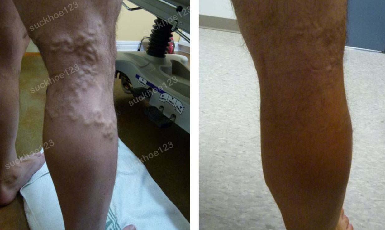 Suy giãn tĩnh mạch ở chân. các tĩnh mạch nổi rõ phía mặt sau chân: phía dưới của đùi và phía trên cẳng chân.