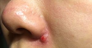 Bác sĩ cho em một lời khuyên với ạ! - Mụn này thì nên lấy ra không hay để thời gian nữa a? Mụn này lúc mọc đã không có nhân kiểu bị chai (ngứa và đau) - Em đắp nạ xong sáng hôm sau bị vậy có phải dư ẩm không ạ ?
