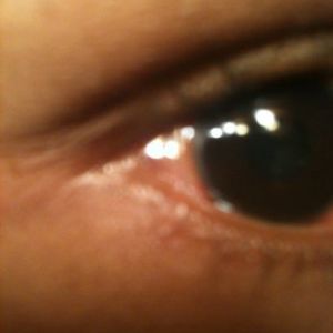 Mắt bạn có vẻ hơi bị phù kết mạc nhẹ và bầm tím. Hiện tượng này khá bình thường trong quá trình lành thương. Hãy hỏi bác sĩ về các loại thuốc nhỏ mắt như blephamid hoặc tobradex và thuốc mỡ bôi trơn mắt hoặc nước mắt nhân tạo.
