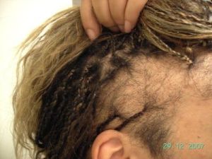 Lực căng trong suốt thời gian dài lên nang tóc có thể dẫn đến hình thành mô sẹo thay thế nang tóc và dẫn đến tóc vĩnh viễn không thể mọc lại. Vị trí bị ảnh hưởng nhiều nhất là hai bên đầu do phải chịu lực căng lớn nhất khi tết tóc hay búi tóc.
