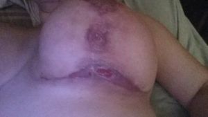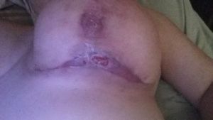 Chào bác sĩ, tôi mới được 11 ngày sau mổ, nhưng vết mổ ở nếp gấp dưới vú của tôi đã bị tách hở ra và hơi rớm máu một chút. Tôi đã dùng kháng sinh Levaquin 1 tuần sau mổ, bây giờ chỉ giữ vết mổ sạch thôi. Tuần sau mới đến ngày hẹn tái khám của tôi.