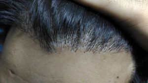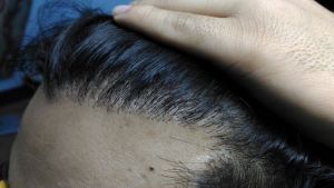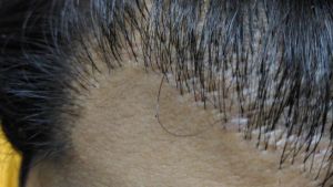 Đây là tình trạng mọc tóc bình thường, tuy nhiên ở đường chân tóc của bạn không có các cụm một sợi tóc, khiến cho đường chân tóc trông bị thô.