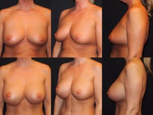 Túi độn ngực bên phải của bạn thực sự đã lồi đáy. Để chữa thì phải phẫu thuật khôi phục nếp gấp chân ngực. Bạn cũng có thể đạt được kết quả tốt hơn bằng cách củng cố bầu ngực với vật liệu sinh học ADM hoặc nhiều sản phẩm khác mà có khả năng gia tăng lượng mao mạch mọc bên trong để tạo ra lớp sẹo bên trong chắc chắn hơn.Về mặt kỹ thuật, bạn không thực sự có biến dạng gò ngực kép. Nếp gấp chân vú có dấu hiệu xuất hiện ở cả hai bầu vú; tuy nhiên, từ hình ảnh ngoài cùng bên phải của màn hình, tôi thấy bạn đang co các cơ ngực lớn, do đó ngực bị biến dạng chạy lên phía trên là điều bình thường. Đây là một cách dễ dàng để xác định xem liệu túi động ngực có nằm dưới cơ hay không. Bạn cũng có thể cân nhắc sử dụng túi độn ngực nhỏ hơn để giảm nguy cơ tái phát.