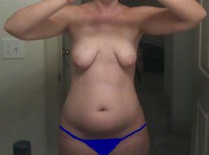 Ngực của bạn quá xa nhau và quá thấp. Bạn cần định vị lại và định hình lại bộ ngực của mình. Điều này có thể được thực hiện bằng cách sử dụng phương pháp treo sa trễ bằng đường rạch quanh quầng vú sẽ giúp mô vú của bạn được kéo lên cao hơn, dịch chuyển nó vào gần trung tâm hơn và thay đổi hình dạng của vú để tăng độ nhô. Nếu bạn muốn to hơn thì có thể đặt túi độn qua cùng một vết rạch. Tôi khuyên bạn nên đặt túi độn silicon gel vào ngực vì chúng trông tự nhiên hơn. Bụng của bạn có thể được cải thiện bằng cách hút mỡ hoặc phẫu thuật tạo hình bụng. Tuy nhiên, đừng làm tạo hình thành bụng nếu bạn đang cân nhắc việc mang thai trong tương lai. Nếu bạn đã sinh con xong thì có thể tiến hành phẫu thuật tạo hình thành bụng với phương pháp đặt lưới gia cố, điều này sẽ làm giảm trọng lượng của bạn và giúp duy trì trọng lượng đã giảm. Ngoài ra, phẫu thuật tạo hình thành bụng sẽ làm cho ngực của bạn có vẻ lớn hơn và bạn có thể sử dụng các túi độn nhỏ hơn, ổn định lâu dài hơn. Tóm lại, tôi khuyên bạn nên Nâng ngực kèm theo treo sa trễ mini và tạo hình thành bụng có đặt lưới. Tôi chưa bao giờ khuyến khích phẫu thuật cấy mỡ vì nó chưa được chứng minh và có thể dẫn đến biến chứng.
