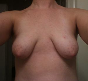Bạn đã xác định chính xác mình là người có bộ ngực hình ống - quầng vú to, xệ, nếp gấp dưới bầu ngực nằm ở vị trí cao và hai bầu ngực cách xa nhau. Tôi nghĩ rằng bạn sẽ có được kết quả tốt nhất khi nâng ngực, sắp xếp lại mô vú cùng lúc (tôi mở rộng bầu ngực dưới để nó đồng đều hơn trên thành ngực) và treo sa trễ bằng đường rạch quanh quầng vú. Nếu chỉ cấy mỡ thì quầng vú vẫn to và bầu ngực không thay đổi hoàn toàn về hình dáng. Ngực sẽ đẹp hơn chút, đặc biệt nếu làm treo sa trễ, nhưng không phải đẹp nhất. Cũng có một số vấn đề đối với việc cấy mỡ khi sắp xếp lại/nâng mô vú - về cơ bản bác sĩ phẫu thuật chỉ có thể cấy mỡ vào mô KHÔNG được di chuyển tại thời điểm phẫu thuật. Là một bác sĩ phẫu thuật, việc bạn tự bóc da khiến tôi lo lắng - tại sao bạn lại làm như vậy? Nếu bạn là bệnh nhân của tôi, tôi sẽ hét vào mặt bạn. Đừng cố bóc da vết mổ của bạn sau khi phẫu thuật. Đừng bao giờ bóc bất cứ thứ gì trừ khi bạn vừa rửa tay sạch sẽ, điều đó sẽ khiến bạn ít nhất không phải lơ đãng cậy, bóc da cả ngày. Hãy thử công nghệ ánh sáng IPL (thường được gọi là "fotofacial") để loại bỏ vùng biến dạng sắc tố, một phương pháp điều trị Cosmelan hoặc hydroquinone tại chỗ để làm sáng hoặc loại bỏ các đốm. Nhớ đừng cậy da nữa nhé.