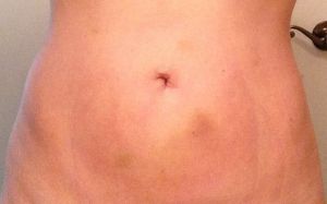 Nổi cục nhỏ cũng như bầm tím sau hút mỡ là bình thường. Hút mỡ sử dụng thiết bị que hút mỡ gây tổn thương mô và bầm tím đáng kể. Khu vực quanh rốn có những sợi mô xơ cũng như nhiều mạch máu hơn những vùng khác; điều này làm tăng nguy cơ bị bầm tím. Mát-xa khu vực này và qua thời gian nó sẽ hết. Không có gì đáng ngại.
