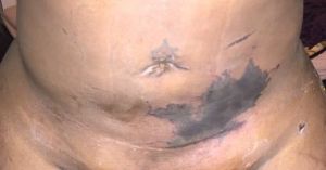 Bạn nên tìm một bác sĩ chuyên khoa bỏng/liền viết thương, người có chuyên môn hơn trong chăm sóc tổn thương da. Nên để vết thương tự hồi phục, điều này cần sự kiên nhẫn và các biện pháp chăm sóc vết thương phù hợp. Trong nhiều tháng sau, bạn sẽ phải đối mặt với vết sẹo tạo ra từ tình trạng này, nhưng cũng “may” cho bạn, vì nó nằm ở vị trí đủ thấp để có thể sửa lại bằng tạo hình thành bụng. Nếu bạn bị cái này ở vị trí bên trên rốn thì tình huống của bạn sẽ tệ hơn nhiều.