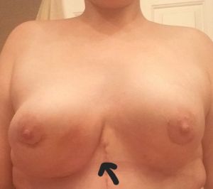 Nếu bạn cảm thấy một bên to hơn nhiều - hãy đến gặp bác sĩ phẫu thuật thẩm mỹ của bạn để đảm bảo là mình không bị tụ máu. Nhớ yêu cầu bác sĩ giải thích vì sao không dùng đường rạch hình kẹo mút (có thể là bạn không cần tới nó sau khi đã đặt túi độn ngực). Chắc chắn một bên túi độn nằm cao hơn, nhưng rồi nó sẽ tụt xuống đúng vị trí. Ảnh không thể hiện rõ vị trí các vết mổ. Hình dáng kỳ quặc ở bầu ngực bên phải có thể chỉ là tạm thời sau treo ngực sa trễ hoặc có thể là biến dạng gò ngực kép. Cần khám và xem lại các bức ảnh trước đó với bác sĩ phẫu thuật thẩm mỹ, để quyết định xem liệu chờ đợi có phải là câu trả lời không, hay cần phải can thiệp ngay từ bây giờ.