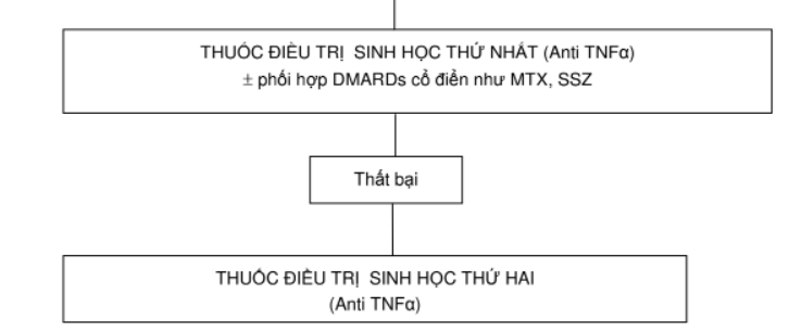 − Các chất kháng yếu tố hoại tử u nhóm alpha (kháng TNF ∝): là các tác nhân sinh học điều trị nhắm đích (targeted therapy) được đưa vào điều trị các bệnh tự miễn hệ thống trong đó có bệnh viêm khớp vảy nến từ 10 năm gần đây. Điều trị sinh học được chỉ định khi đáp ứng kém hoặc điều trị thất bại với DMARDs cổ điển.