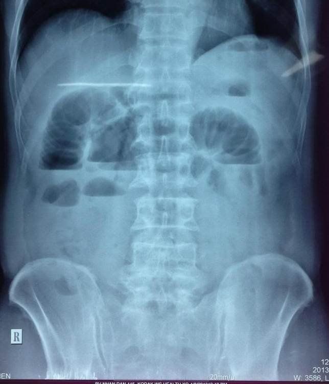 - Ở tư thế nằm ngửa, ước tính độ căng của đoạn ruột được thực hiện dựa trên chiều rộng của các quai ruột.