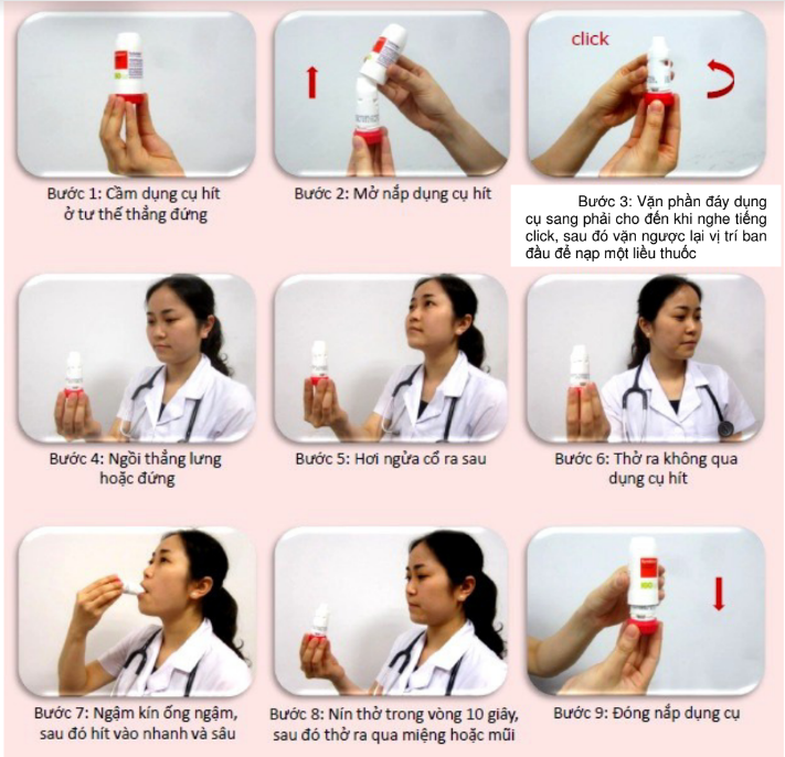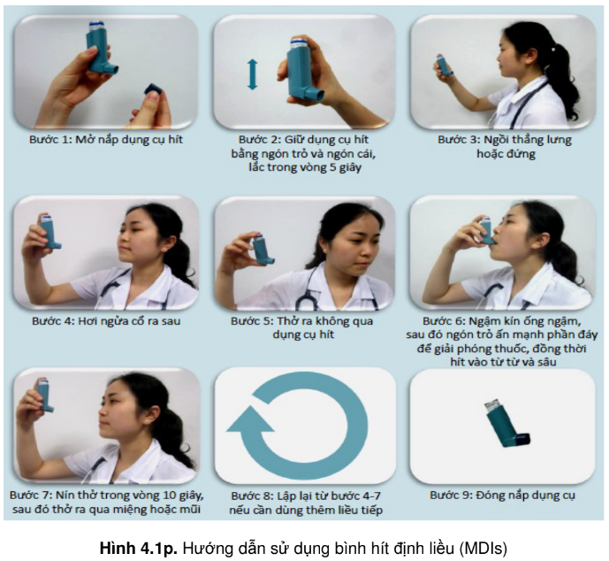 − Các dụng cụ bao gồm: bộ nén khí, ống đựng thuốc, ống ngậm hoặc mask và dụng cụ đo liều thuốc.