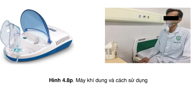 − Máy khí dung là thiết bị chuyên dung dịch thuốc thành dạng phun để tối ưu hóa sự lắng đọng thuốc ở đường hô hấp dưới. Các thuốc có thể sử dụng dưới dạng khí dung bao gồm corticosteroid, thuốc giãn phế quản, thuốc kháng cholinergic, kháng sinh, thuốc làm loãng đờm. Có 2 dạng máy khí dung là dạng khí nén và siêu âm.