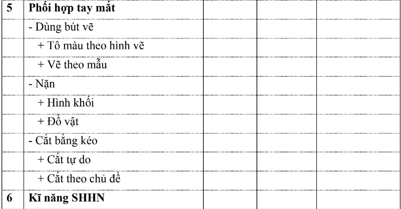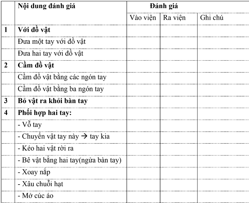 Phiếu lượng giá về kỹ năng vận động tinh và kỹ năng sinh hoạt hàng ngày