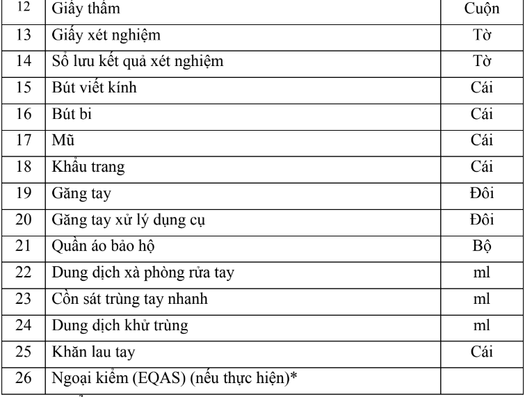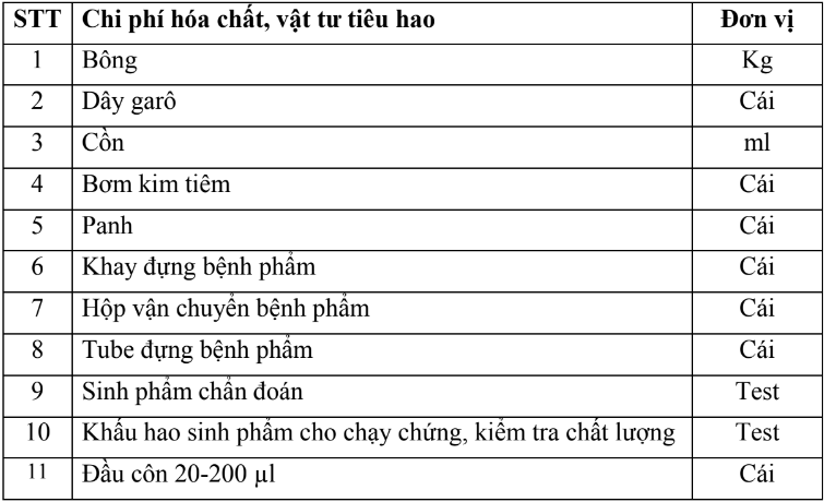 2.2. Dụng cụ, hóa chất và vật tư tiêu hao (bao gồm nội kiểm, ngoại kiểm):