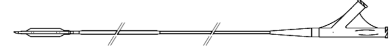 Hình 1. Bóng có 2 lòng (Over The Wire) dùng để bơm tế bào gốc vào trong lòng ĐMV. Khi bóng được đưa đến đầu gần của nhánh ĐMV, thì bóng được bơm theo đường bên để bít kín đầu gần, sau đó dung dịch chứa tế bào gốc được bơm theo lòng chính (thẳng).