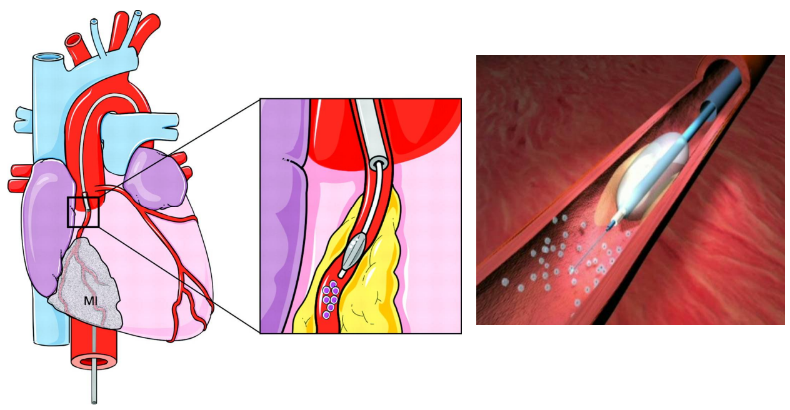 - Tiêm tế bào gốc vào đoạn xa mạch vành từ đuôi bóng qua đường chính của bóng này. Tiêm từ từ 10 mL trong 3 lần, mỗi lần khoảng 3,3 ml, kéo dài khoảng 2 phút. Sau mỗi lần tiêm, làm xẹp bóng trong 3-5 phút để đảm bảo tưới máu mạch vành.