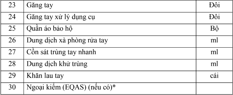 2.2. Dụng cụ, hóa chất và vật tư tiêu hao (bao gồm nội kiểm, ngoại kiểm)