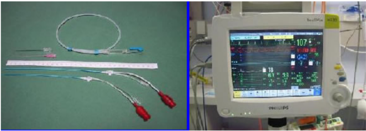 - Một bộ catheter động mạch đùi chuyên dụng của hãng Pulsion có đầu nhận cảm áp lực và nhiệt độ.