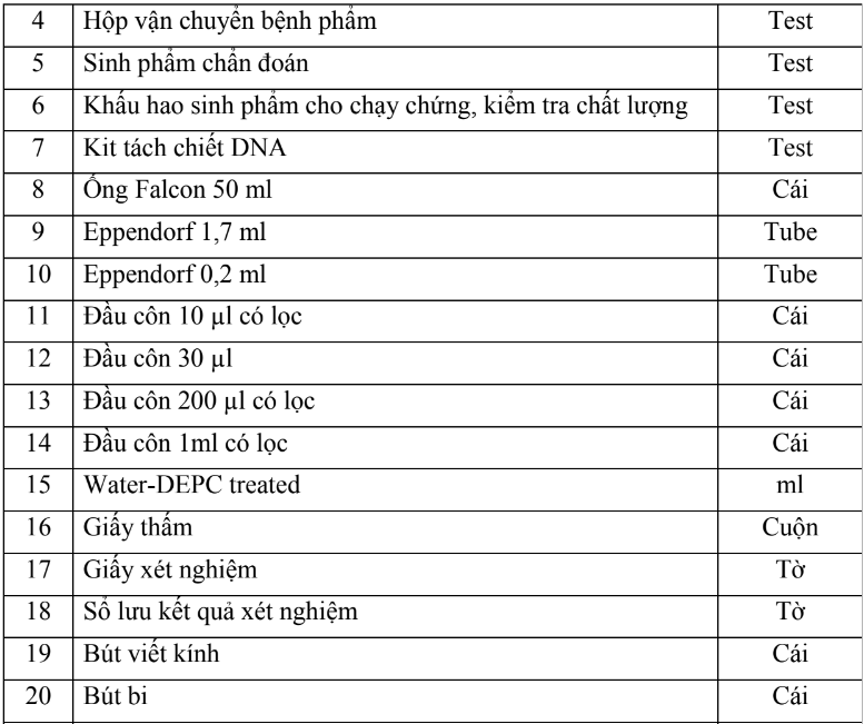 - Người thực hiện: Nhân viên xét nghiệm đã được đào tạo và có chứng chỉ ho c chứng nhận v chuyên ngành Vi sinh (và/ho c sinh học phân tử/ sinh học/công nghệ sinh học).