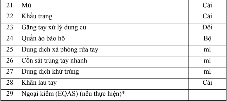 2.2. Dụng cụ, hóa chất và vật tư tiêu hao (bao gồm nội kiểm, ngoại kiểm)
