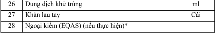 - Chi phí ngoại kiểm cho quy trình kỹ thuật được tính cụ thể theo Chương trình ngoại kiểm (EQAS) là 1/50 tổng chi phí dụng cụ, hóa chất, vật tư tiêu hao (với số lần ngoại kiểm trung bình 3 lần/1 năm).