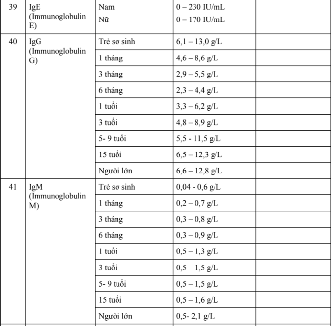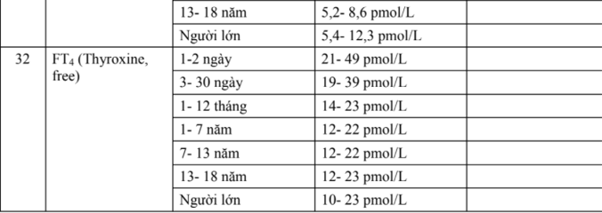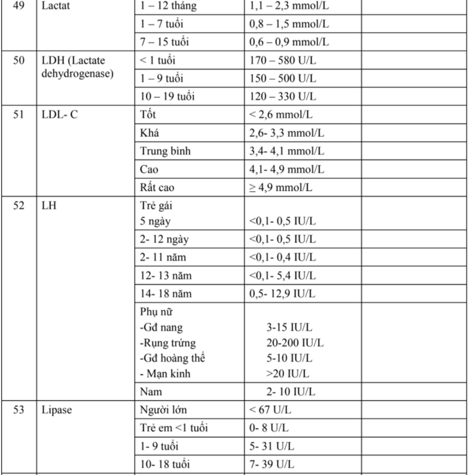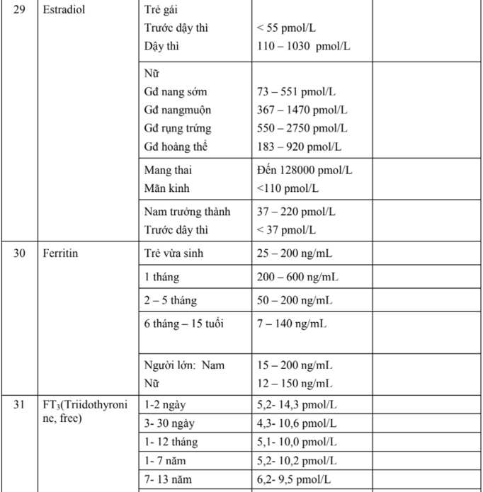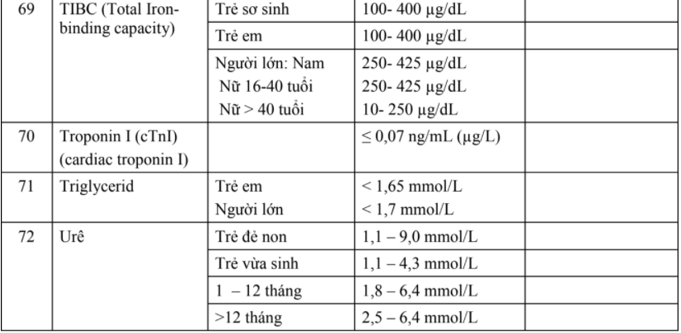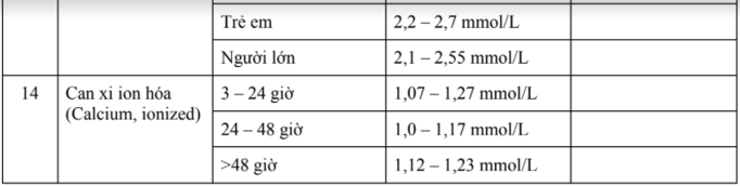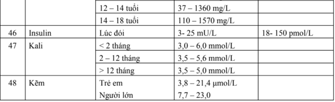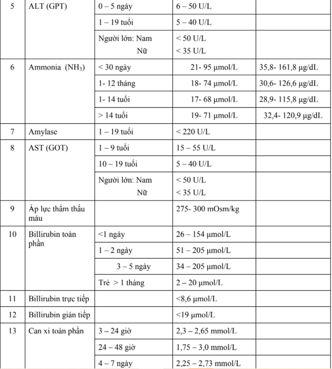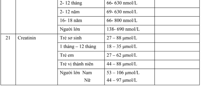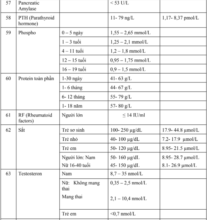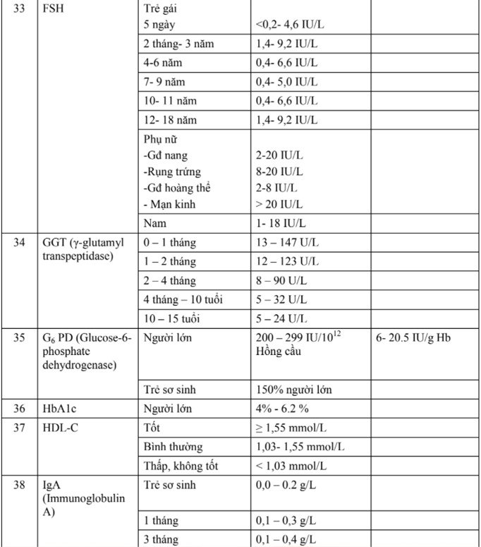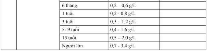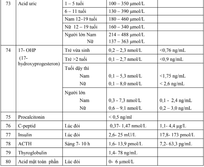 CÁC GIÁ TRỊ HÓA SINH BÌNH THƯỜNG