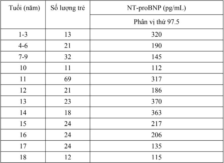 NT-Pro BNP: Trẻ từ 1- 18 tuổi