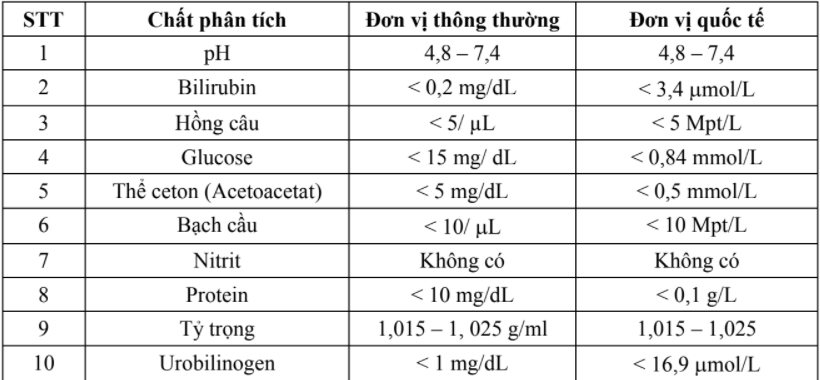 - Bạch cầu: 0 - 5 bạch cầu / vi trường x40