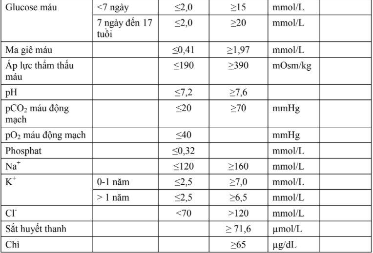 DANH SÁCH CÁC XÉT NGHIỆM HÓA SINH VÀ CÁC GIÁ TRỊ BÁO ĐỘNG