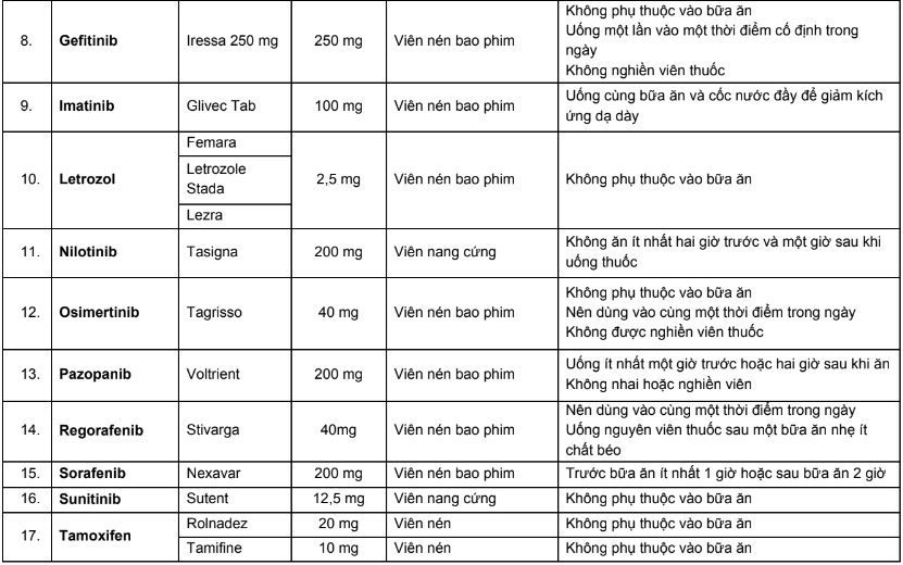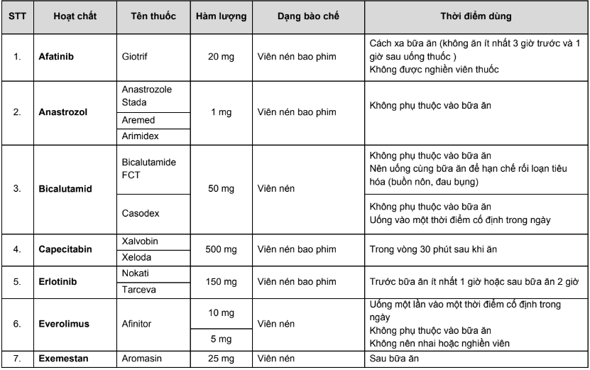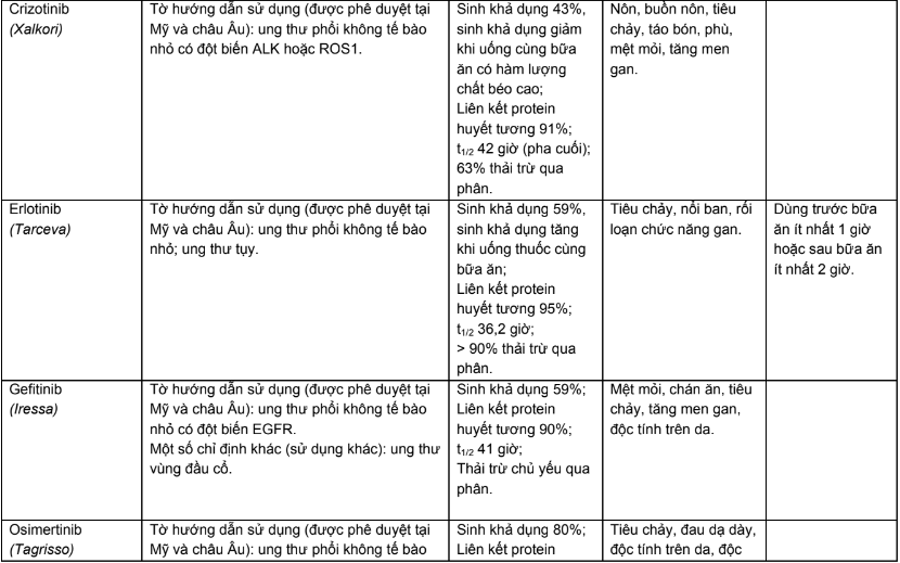 + Đường uống: đa số là các thuốc viên điều trị nhắm đích.