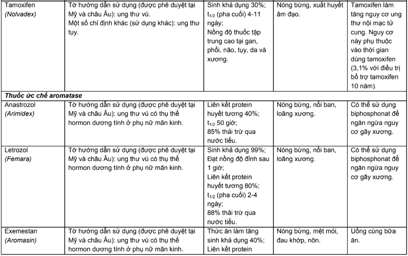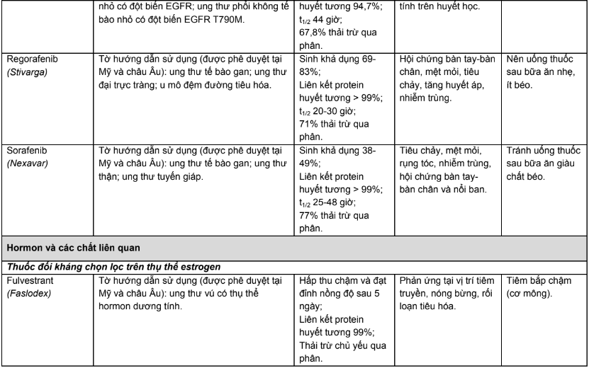 Phụ lục 1. Chỉ định, dược động học, độc tính thường gặp của các thuốc điều trị năm bệnh ung thư phổ biến tại Việt Nam