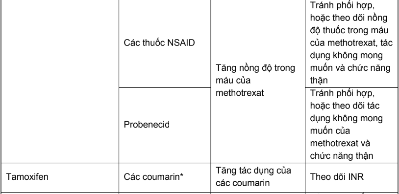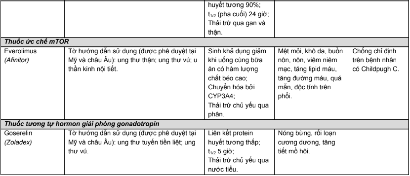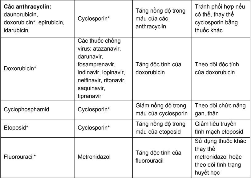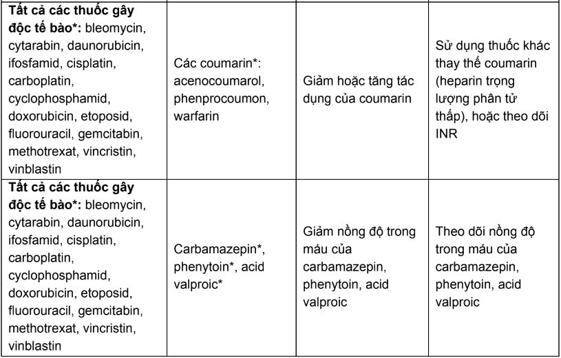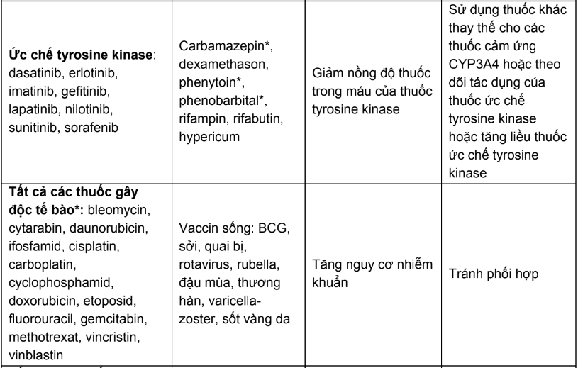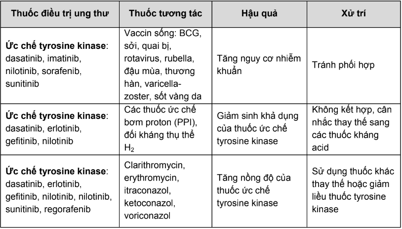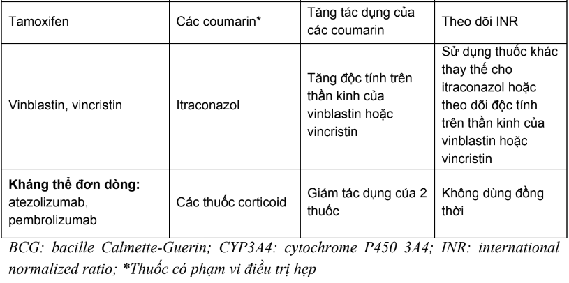 Bảng 1. Các tương tác thuốc của thuốc điều trị ung thư cần thận trọng và chống chỉ định