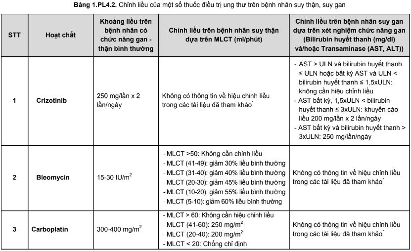 Các chỉ số dược động học công bố trong các tài liệu về thuốc là những giá trị thu được từ các thử nghiệm trên người tình nguyện khỏe mạnh. Ở những đối tượng có những bất thường về chức năng của hai cơ quan chính đảm nhận chức năng thải trừ thuốc là gan và thận, số phận của thuốc trong cơ thể bị thay đổi đáng kể, do đó không thể sử dụng mức liều hoặc nhịp đưa thuốc như khi điều trị cho bệnh nhân không tổn thương gan, thận. Mặt khác, việc sử dụng thuốc điều trị ung thư rất phức tạp do thuốc có phạm vi điều trị hẹp, độc tính cao dù ở liều điều trị và bệnh nhân ung thư là nhóm bệnh nhân dễ xuất hiện phản ứng có hại do họ có khả năng chịu đựng kém. Chính vì vậy, việc hiệu chỉnh liều trên đối tượng bệnh nhân ung thư có suy giảm chức năng gan, thận có ý nghĩa quan trọng.