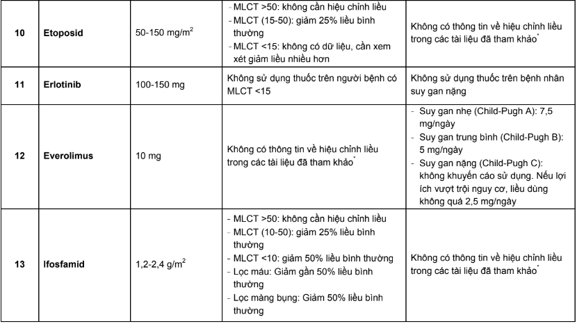Phụ lục 2. Hiệu chỉnh liều trên bệnh nhân suy thận, suy gan