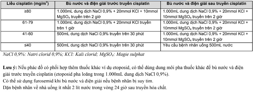 Phụ lục 4. Hướng dẫn bù nước và điện giải khi truyền cisplatin