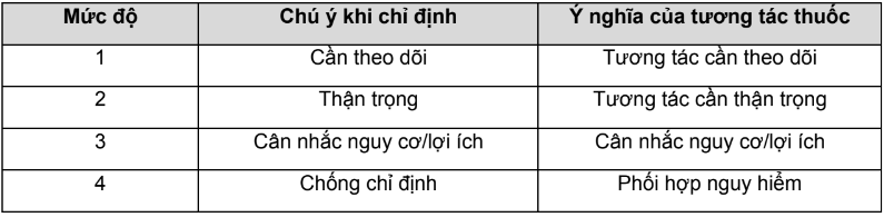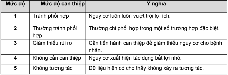 Bảng 5. Phân loại mức độ chú ý khi sử dụng và mức độ tương tác thuốc