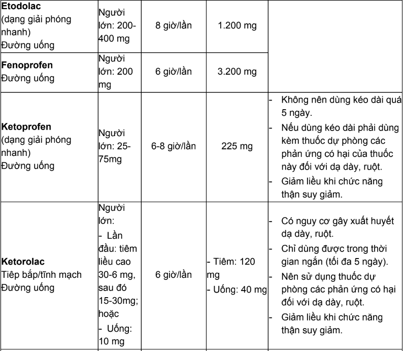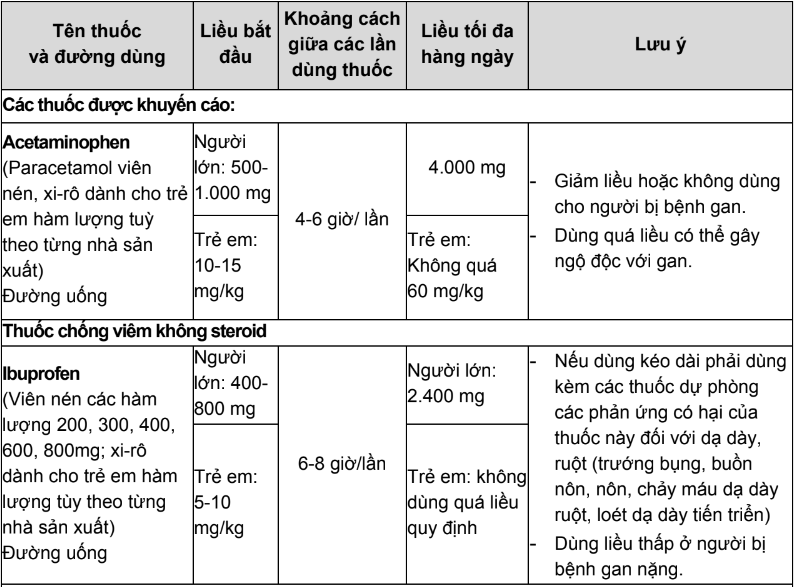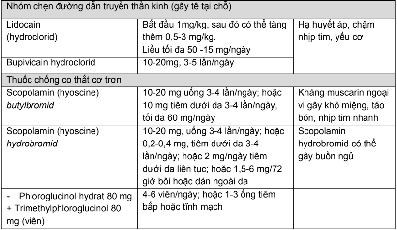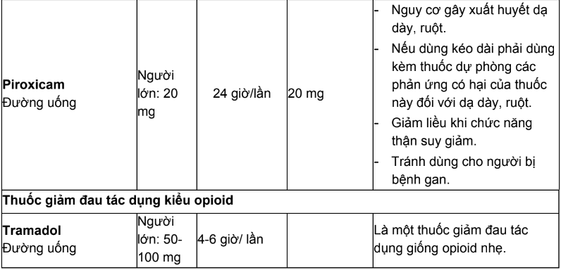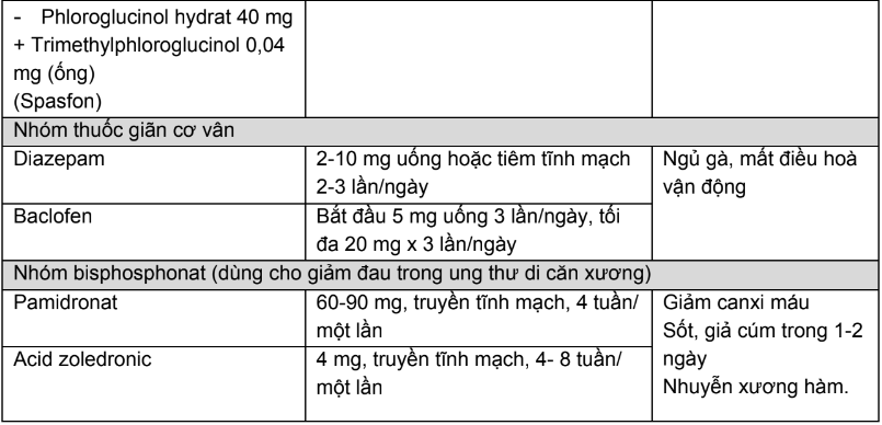 Bảng 2. Các thuốc hỗ trợ trong điều trị đau và cách sử dụng