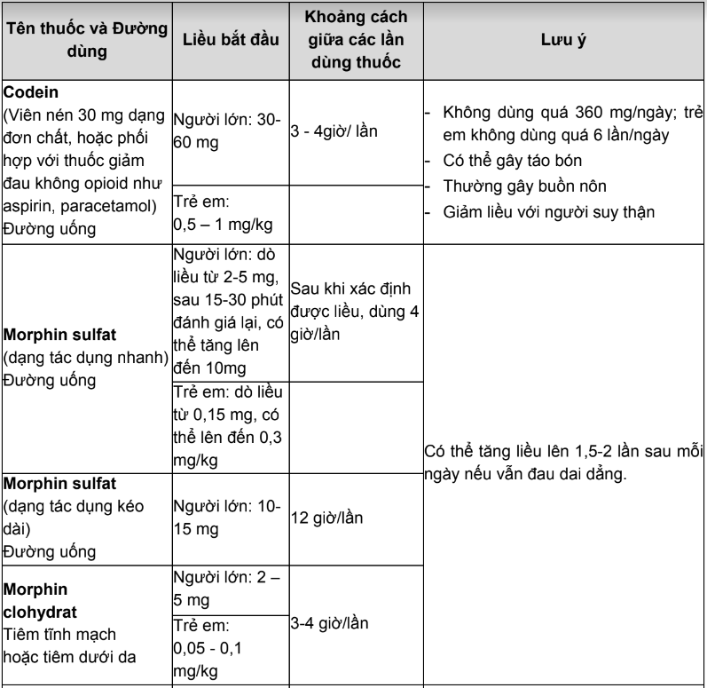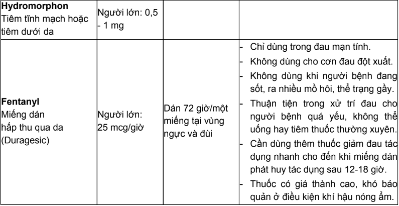 Bảng 1. Các thuốc opioid và cách sử dụng