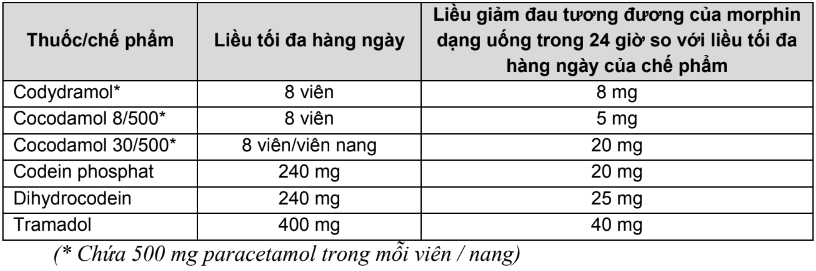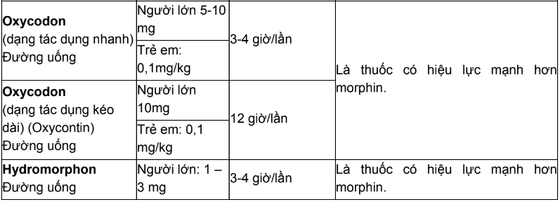 Bảng 6. Opioid mạnh dùng đường uống và dưới da