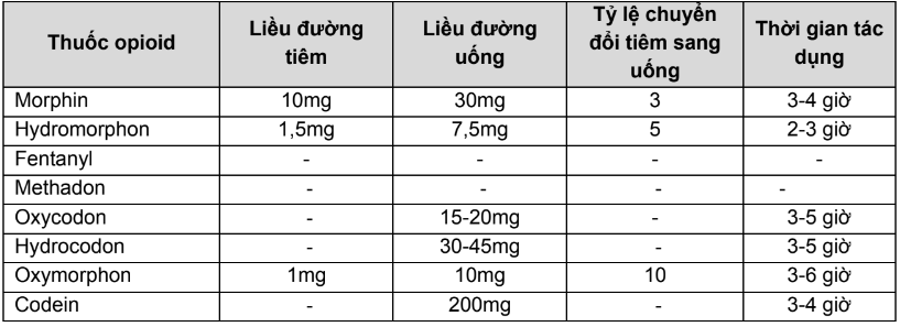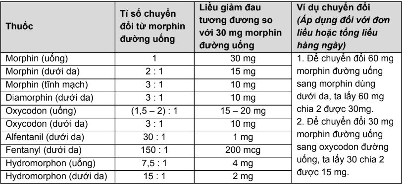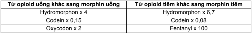 Bảng 3. Quy đổi liều các opioid khác sang morphin