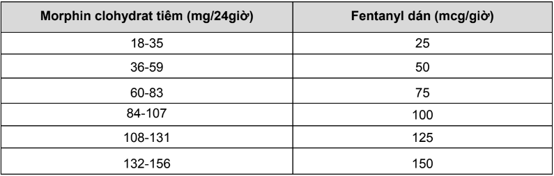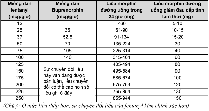 Bảng 4.. Quy đổi morphin đường tiêm sang fentanyl dán