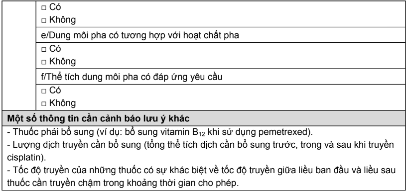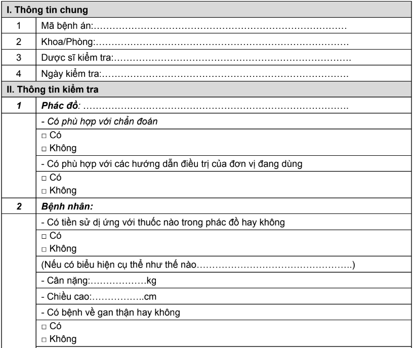 Phụ lục 9. Bảng kiểm tra thông tin trước pha chế thuốc điều trị ung thư
