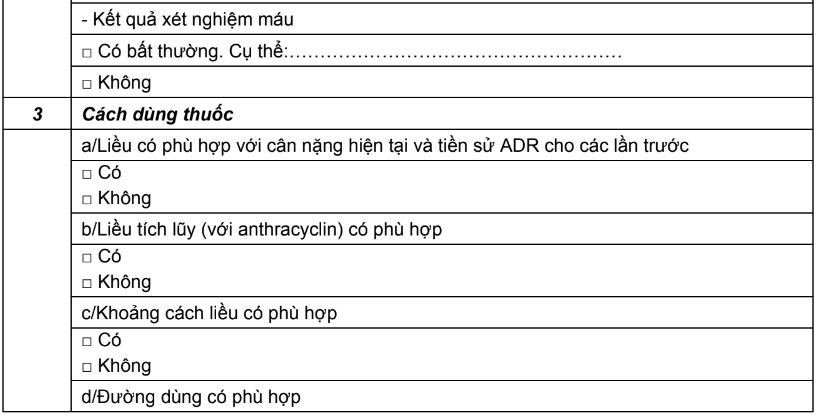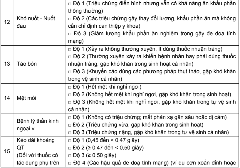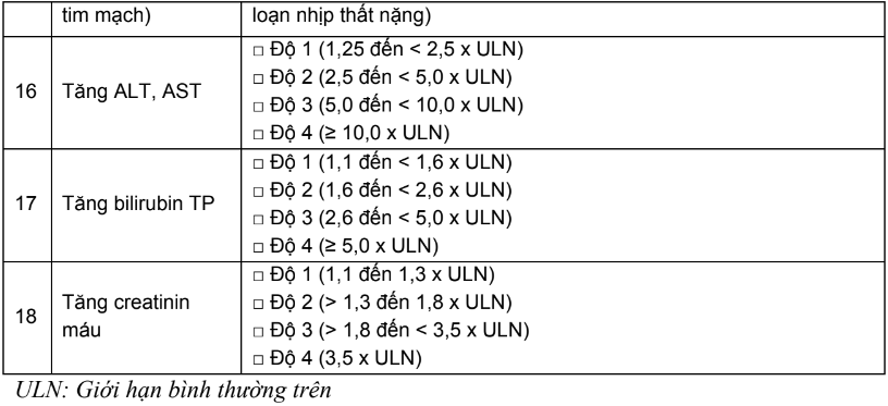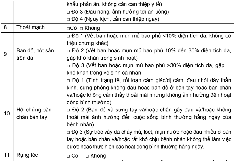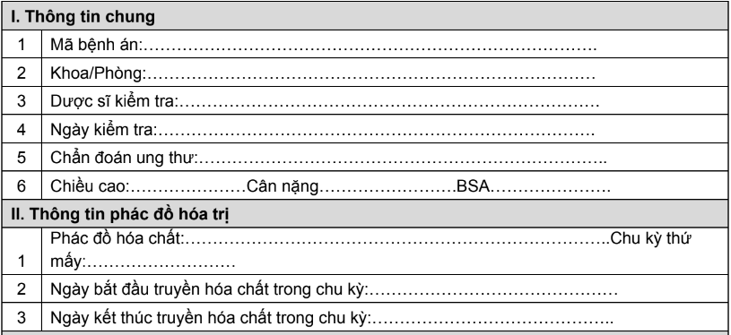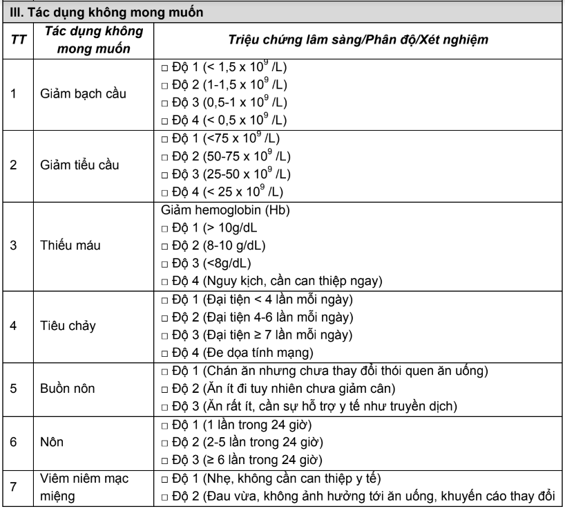 Phụ lục 11. Bảng kiểm giám sát tác dụng không mong muốn, độc tính của hóa trị