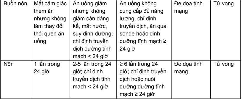 Bảng 2. Phân loại mức độ nghiêm trọng độc tính của hóa điều trị