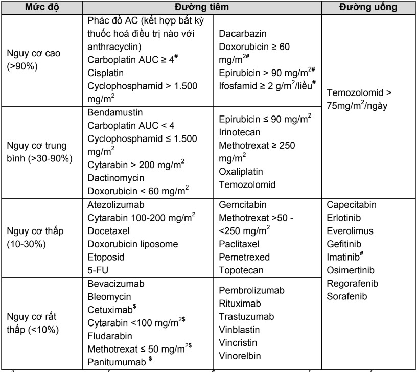 - Không phải tất cả các loại thuốc hóa trị và sinh học đều gây buồn nôn và nôn.