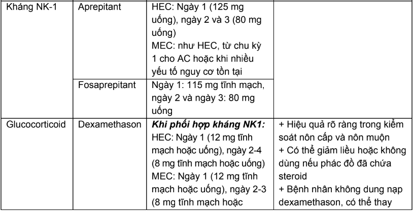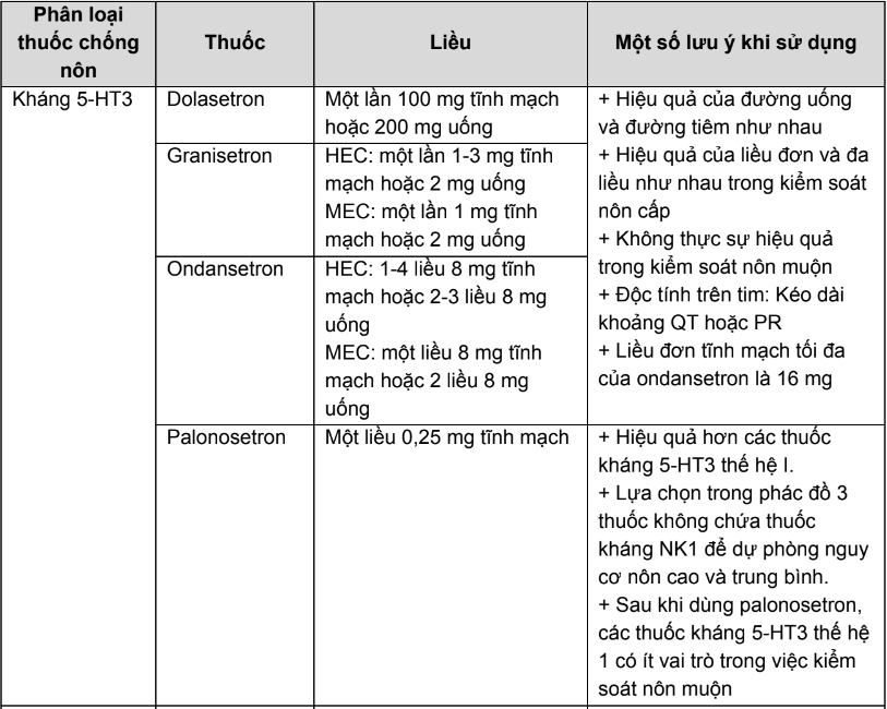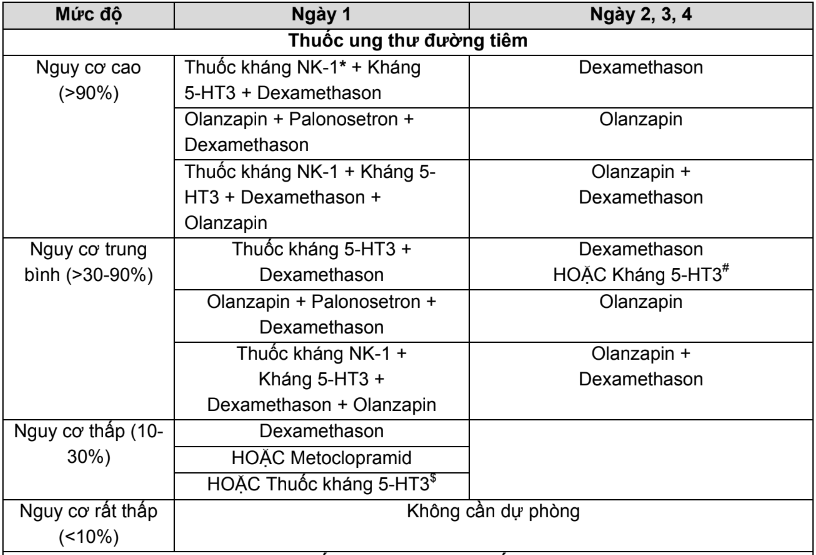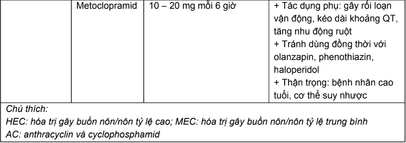 Phụ lục 12. Tác dụng phụ gây nôn, phân loại và phác đồ kiểm soát nôn trong hoá trị